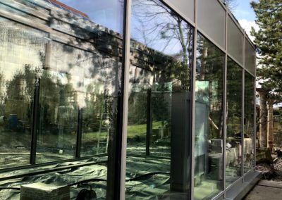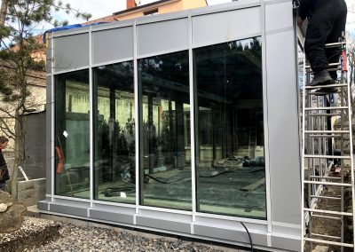 Zimní zahrada Netovice Rozsah: kompletní realizace opláštění Použitý systém: fasádní systém Schüco AOC 50 ST, zdvižně posuvný systém Schüco ASS 70.HI Investor: soukromý investor Termín realizace: 2019-2020